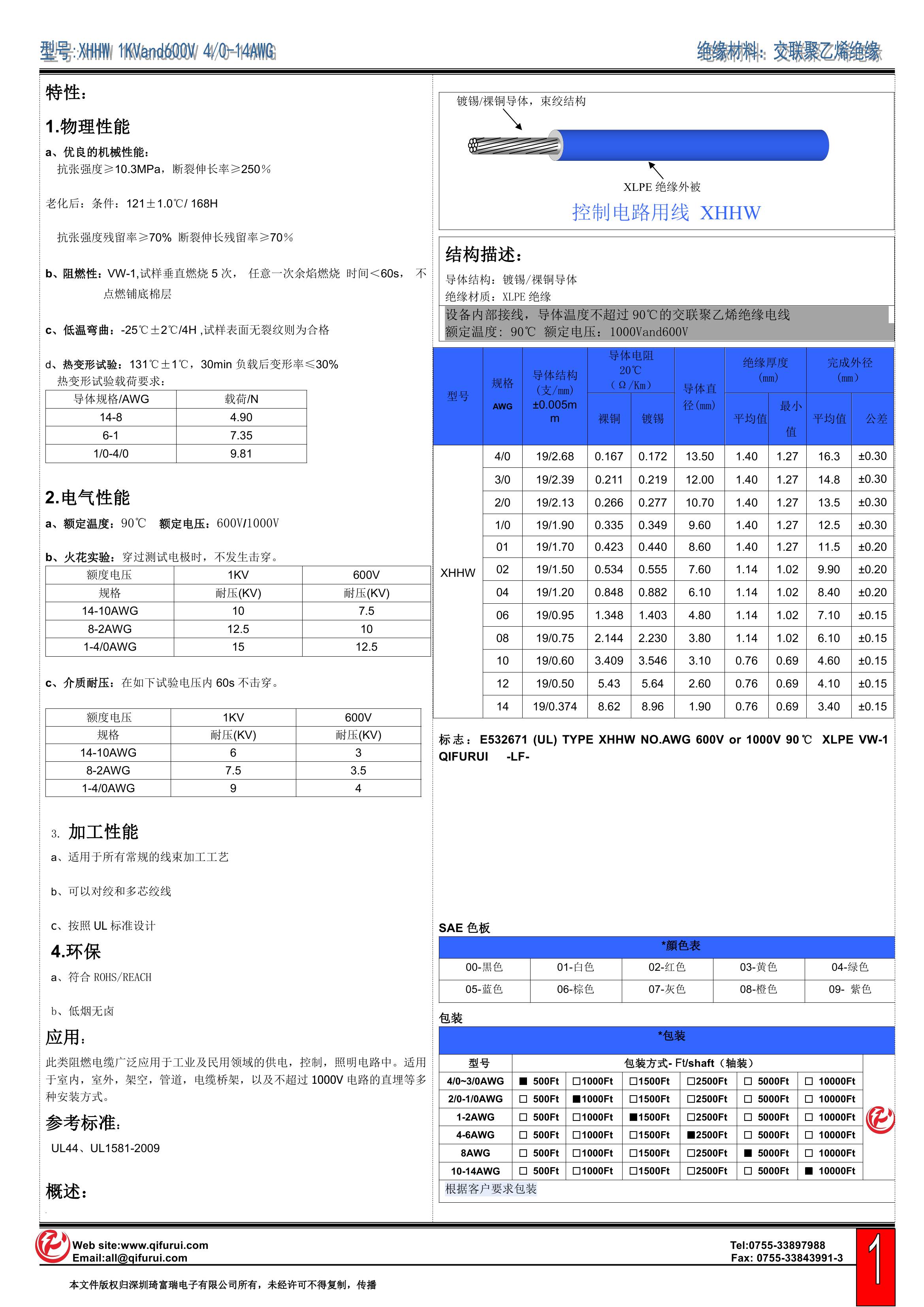 XHHW 1KV和600V